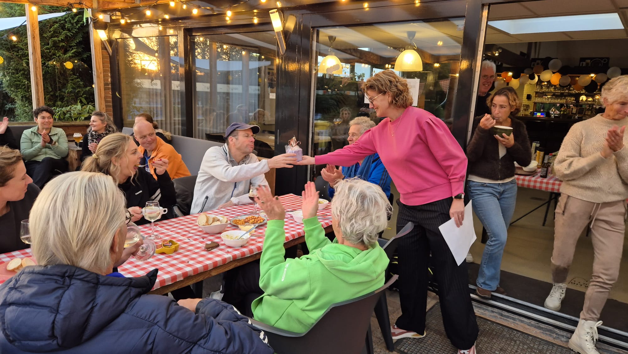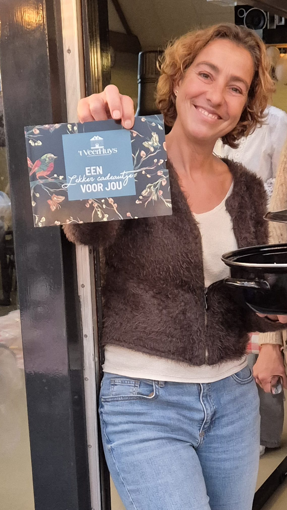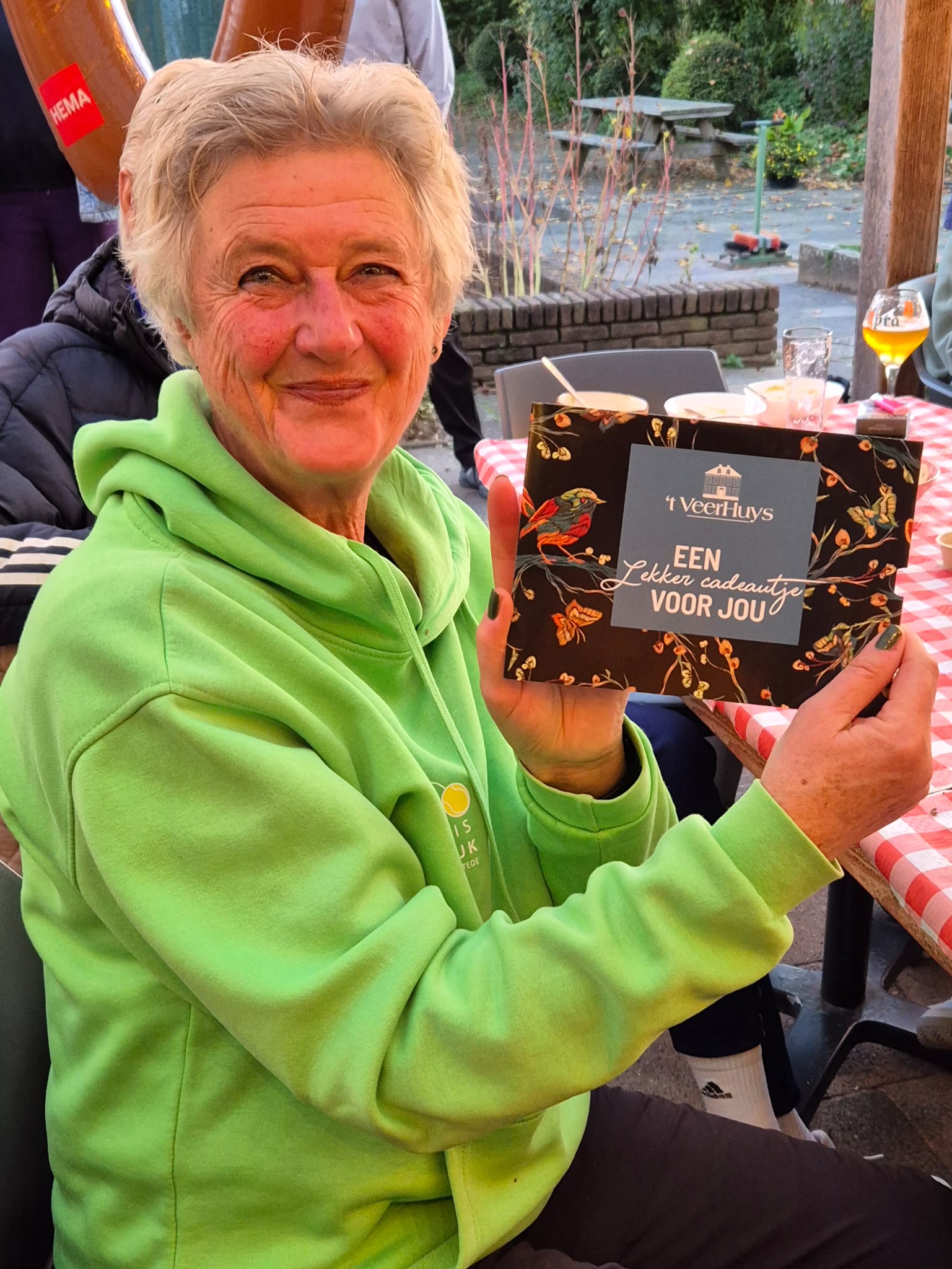 De hoofdprijs, een cadeaubon van €50,-- van ’t Veerhuys, werd via een loting gewonnen door Yvonne van Oostveen.