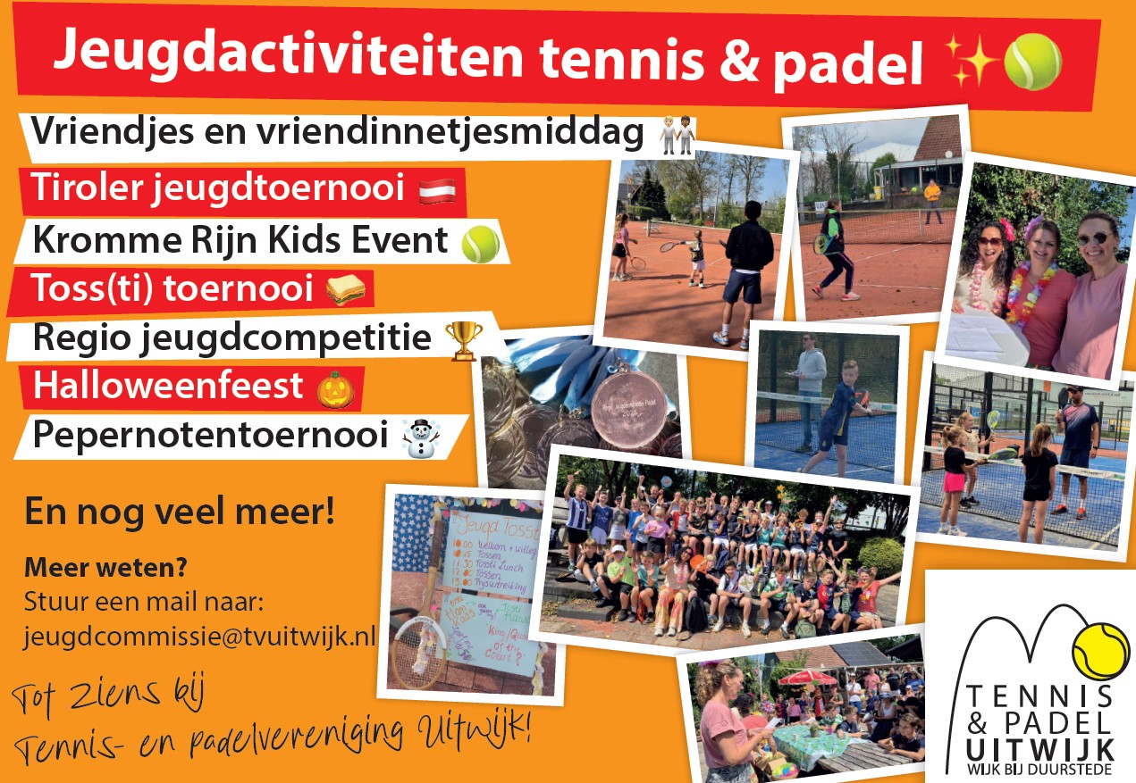 Lijkt het jouw kind leuk om te tennissen of te padellen in zo’n gezellige en sportieve omgeving? Dan ben je bij TPV Uitwijk helemaal op de juiste plek! We organiseren het hele jaar door leuke activiteiten voor onze jeugd.
