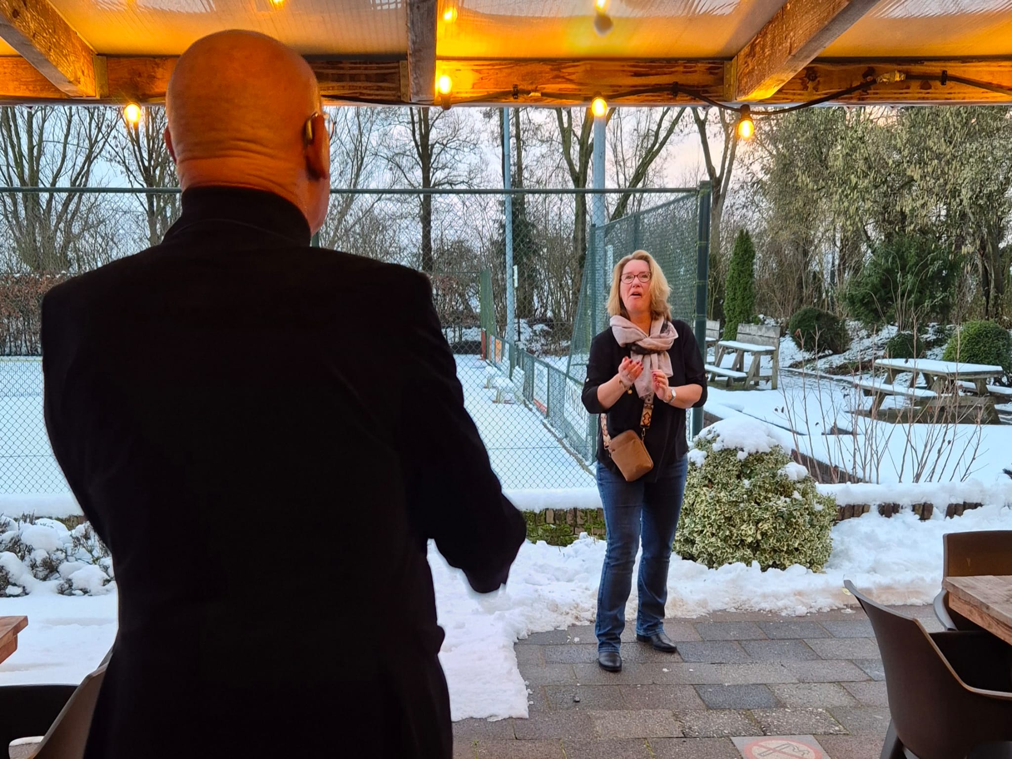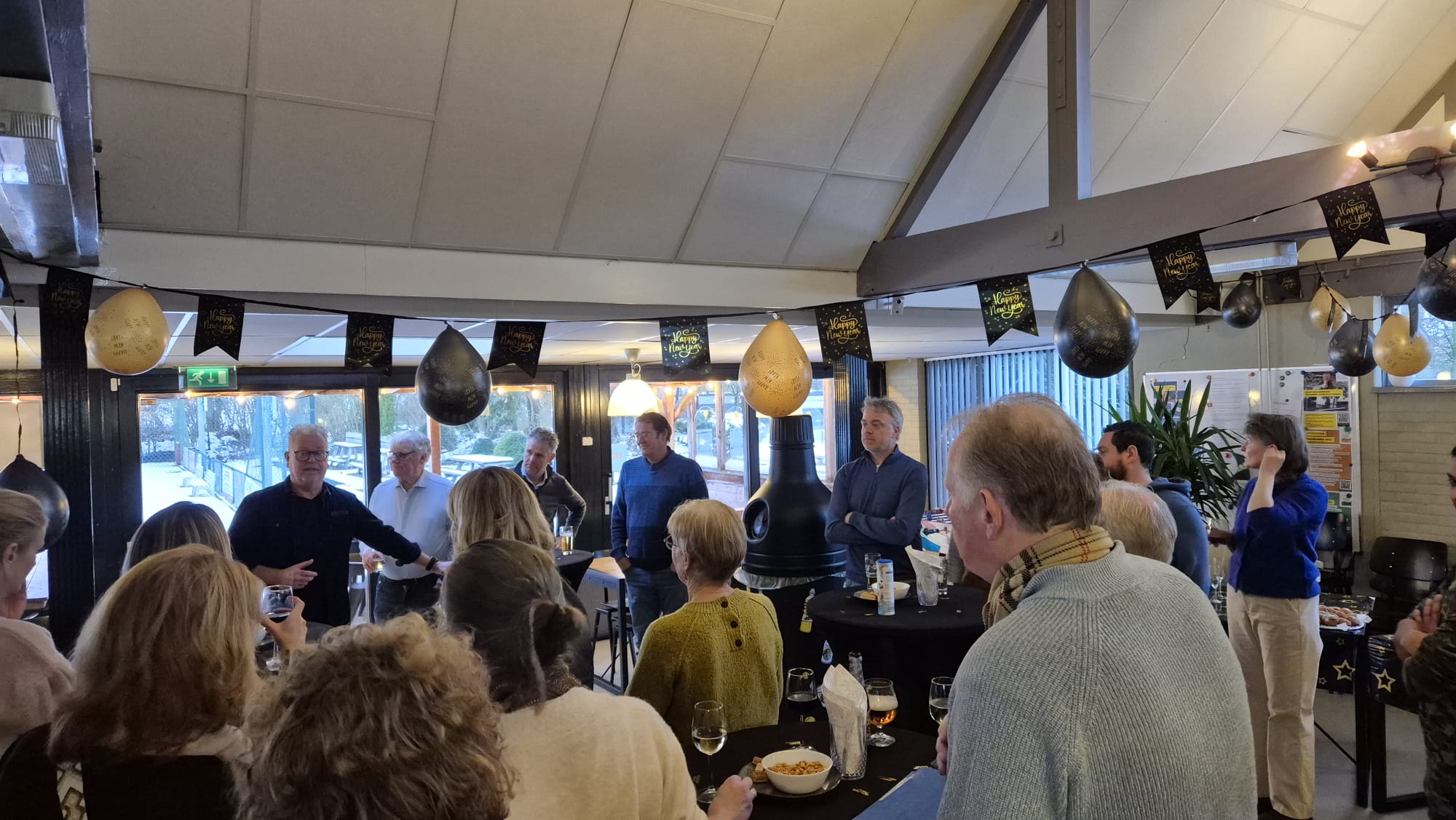 Behoorlijk wat leden trotseerden het winterse weer om samen te proosten op het nieuwe jaar en om bij deze bijzondere momenten aanwezig te zijn. Het was mooi om te zien hoeveel betrokkenheid en gezelligheid er was, ondanks de kou en de sneeuw.